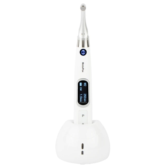 • Motopex - это высокопроизводительный бесщеточный беспроводной эндомотор с миниатюрной головкой и встроенным апекслокатором. Плавное вращение и низкий уровень шума сделают лечение более комфортным для пациентов.