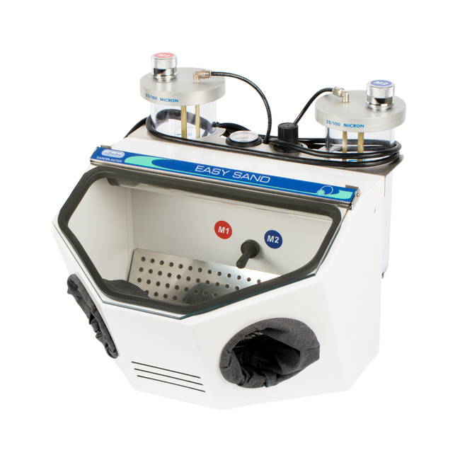 Вес упаковки: 12.00 кг Габариты упаковки (Д x Ш x В): 400.00 мм x 380.00 мм x 350.00 мм Код товара: S-7793 Описание EASY SAND - стоматологический пескоструйный аппарат с двумя модулями | Silfradent (Италия) Easy Sand – это эргономичный пескоструйный аппарат нового поколения с двумя модулями. * Модуль 1 – 125-250 микрон * Модуль 2 – 50-125 микрон Экономичная модификация аппарата с двумя модулями для песка с различными размерами частиц. Внутри прибора расположен селектор модулей и соответствующие форсунки (сопло) из видиа-сплава. Прибор приводится в действие при помощи пневматической педали. Пескоструйный аппарат Easy Sand от Silfradent подходит для всех видов пескоструйной очистки и обработки. Наконечники насадок, изготовленные из твердого сплава, гарантируют долгое использование и максимальную точность. Просторная камера обеспечивает превосходную маневренность. Целиком пневматическая рабочая система с регулятором давления, размещенным снаружи, для беспрепятственной и свободной работы. Преимущества 122 * Идеально подходит для литейных лабораторий; * Циркуляционная система позволяет экономить песок, используя его до тех пор, пока он не сотрется в пыль; * Яркое освещение с низким потреблением энергии (всего 11 Вт) обеспечивает отличную видимость рабочего поля; * Удобный модуль регулировки влажности и давления; * Высокоэффективный фильтр для удаления остатков масла и воды. 122 * Универсальный переходник для пылесоса; * Система центрально закрепленного сопла, изготовленного из высокопрочного материала; * Удобная шкала с цветной маркировкой, соответствующей цвету наконечников; * Смотровое стекло со специальным покрытием, которое защищает от трещин; * Длительный срок службы. 122 * Просторная камера; * Эргономичная педаль; * Улучшенная система, обеспечивающая тщательное всасывание песчаной пыли; * Возможность использования различных типов песка (диоксид алюминия, кварцевые микросферы и т.д.) от 25 до 250 микрон; * Аппарат подходит для всех видов пескоструйной очистки и обработки. Технические характеристики Напряжение 230 В Частота 50/60 Гц Регулируемое рабочее давление От 1 до 7 бар Расход воздуха 100 л/мин (максимальный) Емкость модуля 1 кг Размер 38x33x43 см Количество струйных модулей 2 Вес 13 кг Комплектация 1. Пескоструйный аппарат; 2. Защитная пленка для стекла; 3. Дополнительное сопло для обдува воздухом; 4. Педаль управления. Примечание * Есть возможность подключения к вакуумной системе. * Пескоструйные машины Silfradent также доступны с системой рециркуляции (EASY SAND R) для пескоструйной обработки облицовочных материалов и удаления остатков расплава.